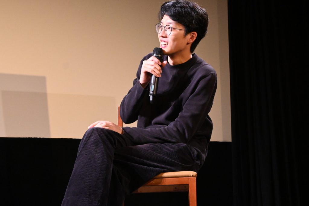 小島央大監督の前作『JOINT』からその才能に着目していたという井筒監督は、開口一番「ようやった!」と絶賛。特に、主人公の島田がPTSD(心的外傷後ストレス障害)を発症する打ち上げ花火のリアリティを取り上げ、「あれ、本物の花火でしょ? CGではなく、実写でやるからこその迫力があった。花火の打ち上がるタイミングと人物の動きを合わせるのもさぞかし難しかっただろうに。とにかく素晴らしかったですよ」と興奮気味。小島監督によると、このシーンがクランクインだったようで、「新潟・小千谷の花火大会で撮影したんですが、打ち上げ音が大きすぎて役者の声が届かず、全員叫びながら撮影していました」と撮影秘話を明かしました。